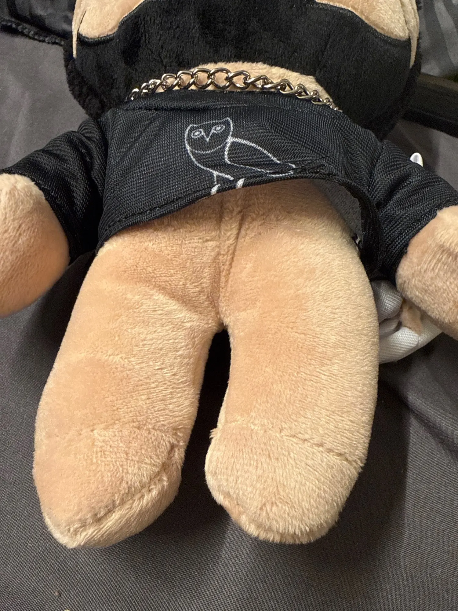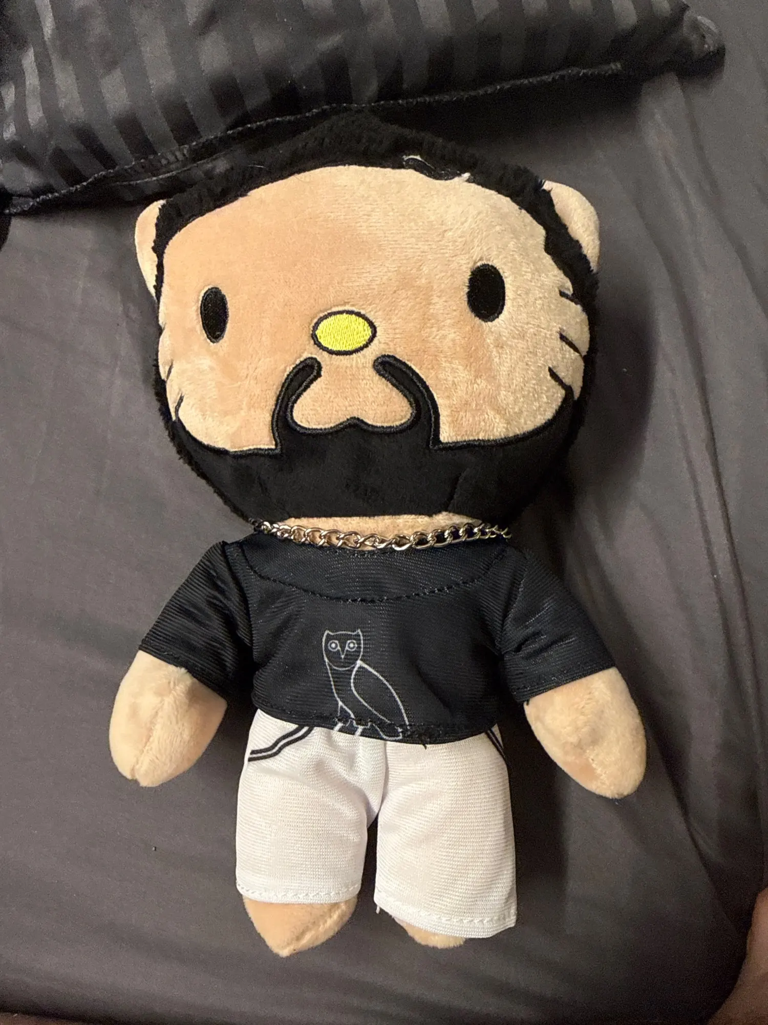 "Champagne Papi" is Drake's famous Instagram handle and alter ego. This drake toy captures that specific luxury aesthetic through the silver chain and high-quality plush fabrics.