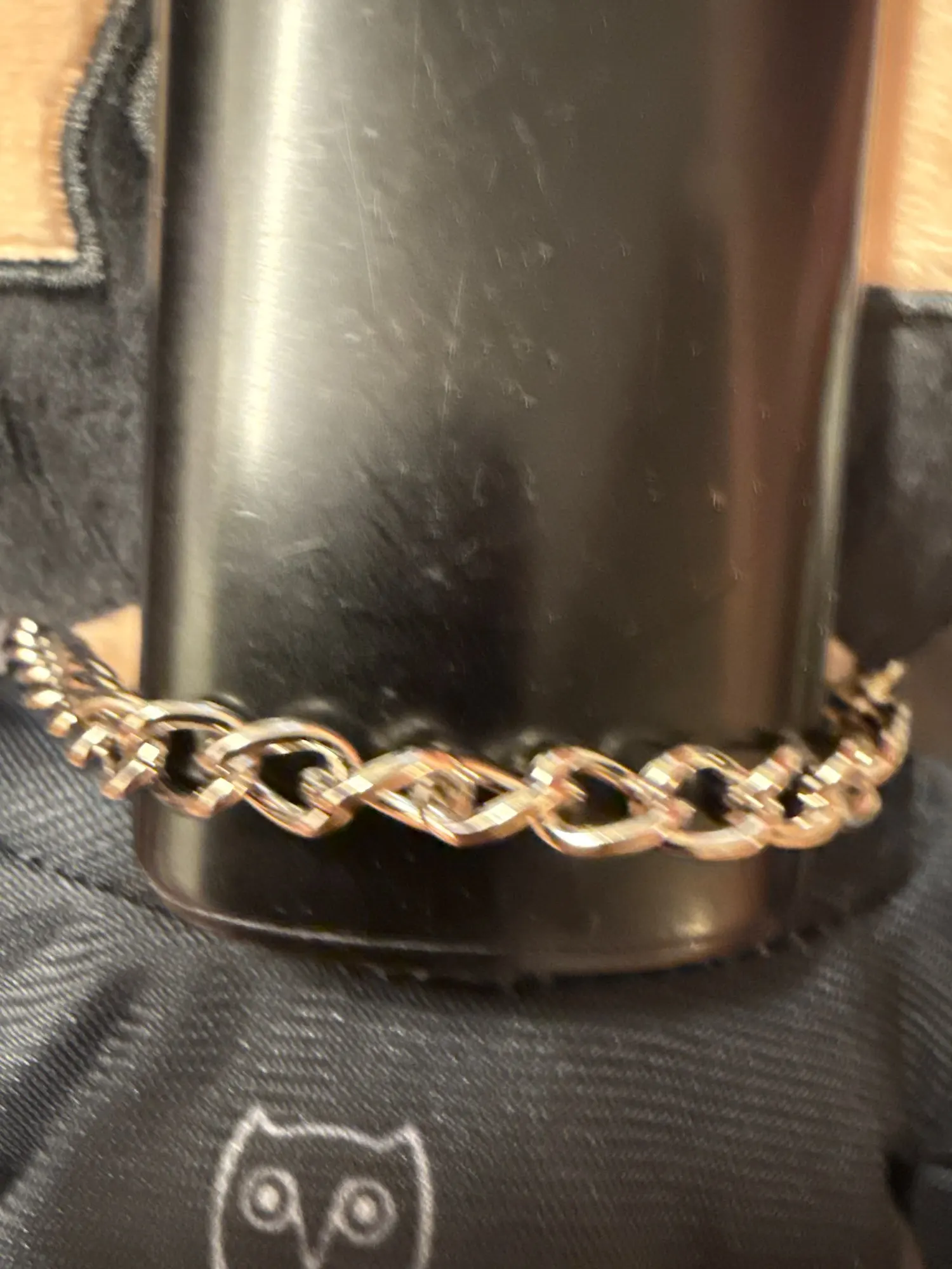 - Iconic Design: Features the famous heart-cut hairline and silver chain.