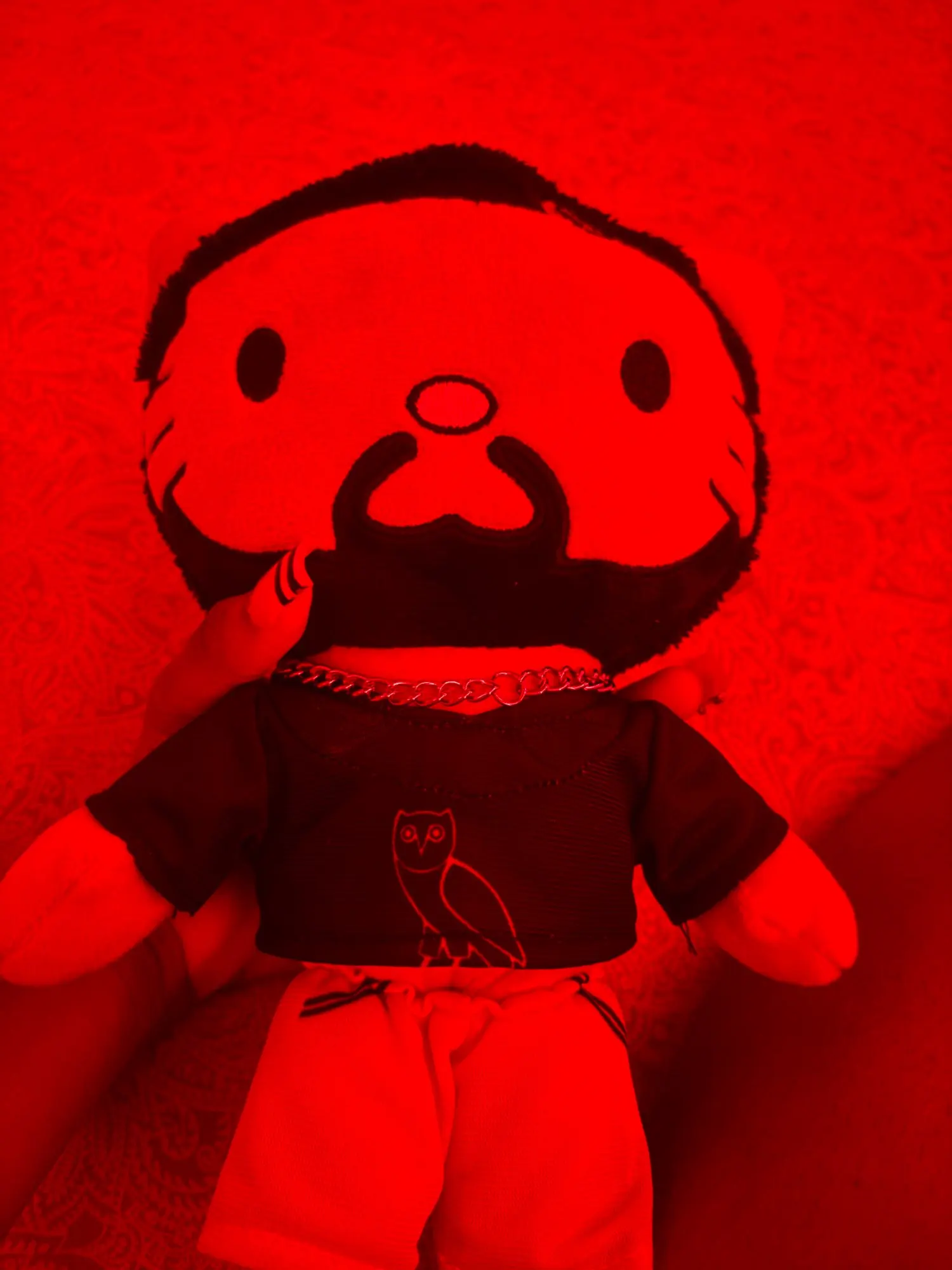 To keep your drake toy looking fresh, we recommend spot cleaning with a damp cloth and mild detergent. Avoid machine washing to preserve the delicate drake rapper doll embroidery and the silver chain detail. Air dry only.